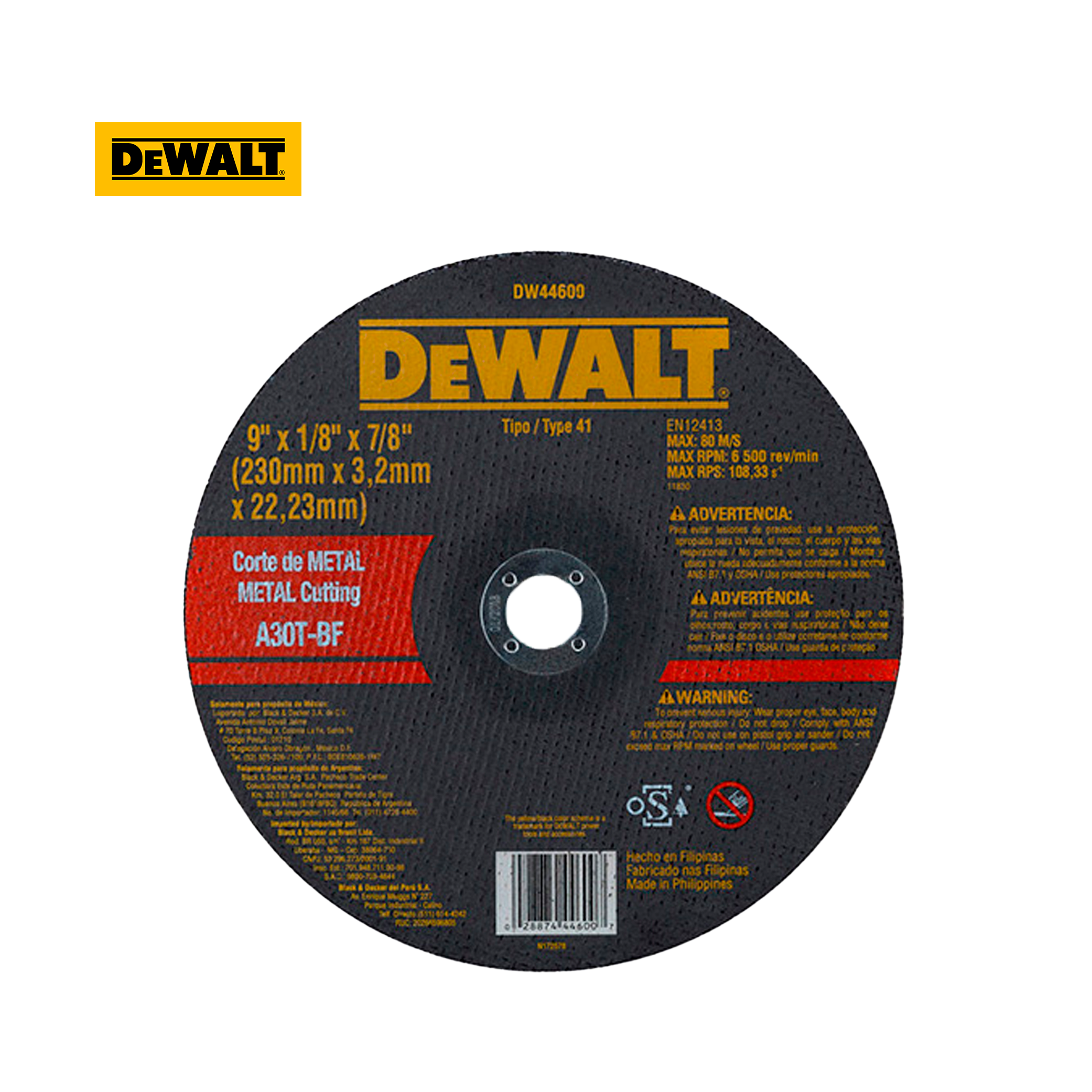 Disco de corte para metal 9″x1/8″x7/8″ DEWALT DW44600